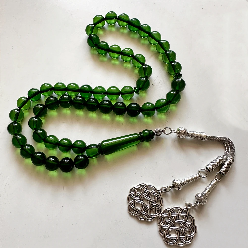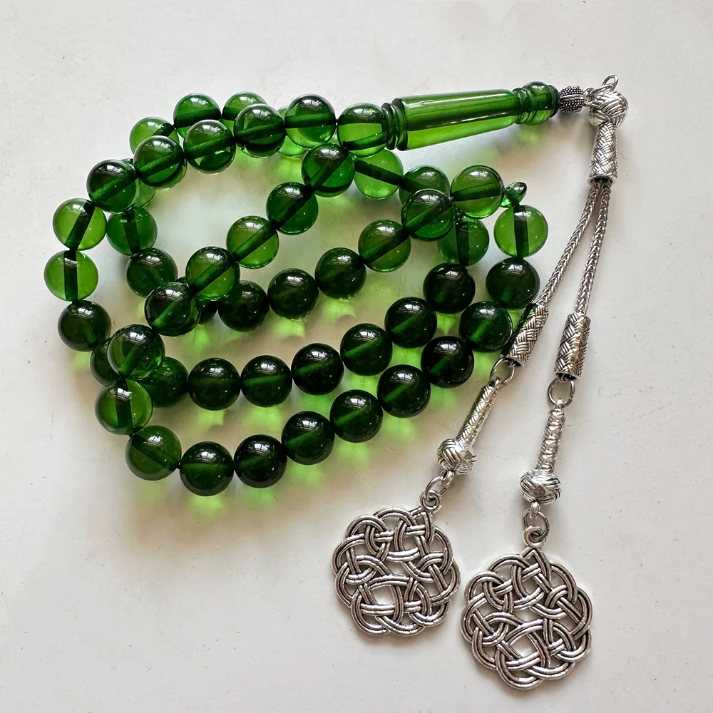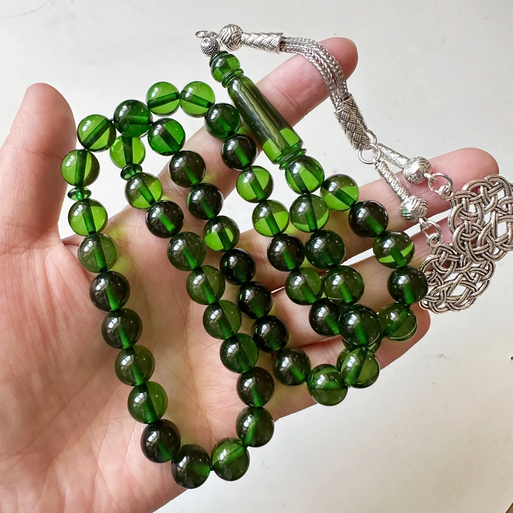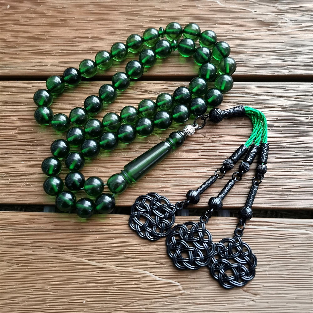 اللون الأخضر العنبر تسبيح 33 66 99 الخرز الإسلامية الفاخرة مسبحة الرجال مسلم misbaha الأحجار الكريمة الصلاة الخرز أساور هدية عيد